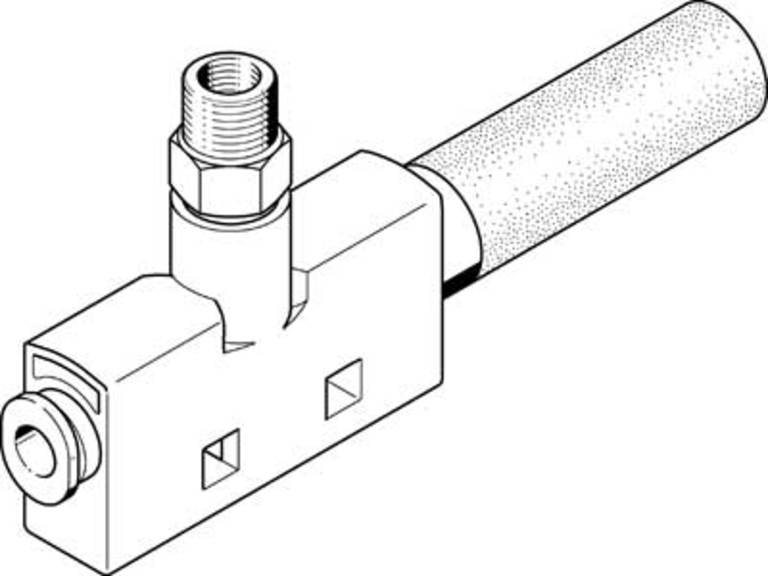 Vacuum generator VN-14-L-T4-PQ2-VA5-RO2 Standard, high suction rate, width 18 mm, T shape with plug connector and open silencer Vacuum connection with male thread. Nominal size, Laval nozzle=1,4 mm, Grid dimension=18 mm, Design, silencer=open, Assembly position=Any, Ejector characteristic=(* High suction flow rate, * Standard)