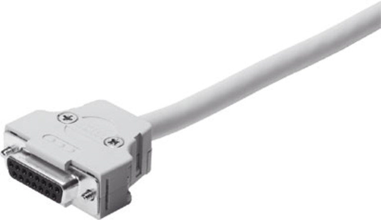 Connecting cable KMP6-15P-12-5 For valve terminal CPV-SC, with 15-pin Sub-D plug, 5 m long. Conforms to standard=DIN 41652, Cable identification=Without inscription label holder, Connection frequency=50, Product weight=585 g, Electrical connection 1, function=Field device side