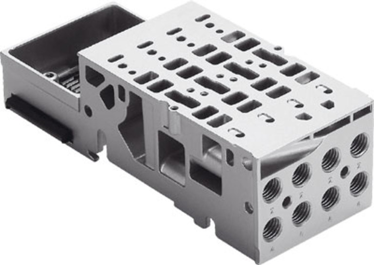 "Sub-base VMPA1-FB-AP-4-1-RV Width=48 mm, Length=107,3 mm, Grid dimension=10,5 mm, Max. number of valve positions=4, Operating pressure=-0,9 - 10 bar