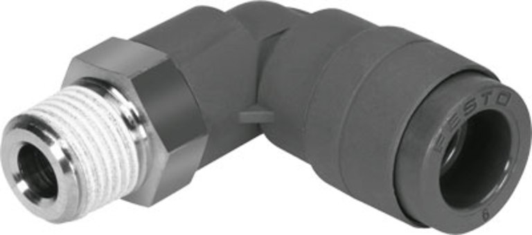 Push-in L-fitting QSL-V0-1/8-8 360ø orientable, male thread with external hexagon. Size=Standard, Nominal size=6 mm, Material fire test=(* UL94 V-0 (housing), * UL94 V-0 (releasing ring)), Type of seal on screw-in stud=coating, Design structure=Push/pull principle