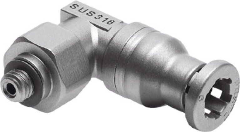 Push-in L-fitting CRQSL-M5-4 360ø orientable, male thread with external hexagon. Size=Standard, Nominal size=2 mm, Type of seal on screw-in stud=Sealing ring, Assembly position=Any, Design=L-shape