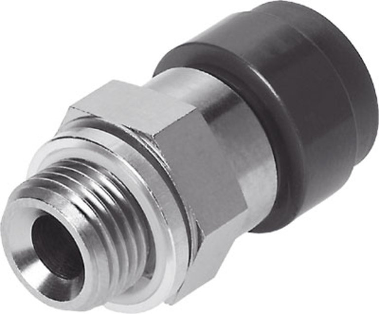 Push-in fitting QS-V0-G1/2-10 male thread with external hexagon. Size=Standard, Nominal size=9 mm, Material fire test=(* UL94 V-0 (housing), * UL94 V-0 (releasing ring)), Type of seal on screw-in stud=Sealing ring, Design structure=Push/pull principle