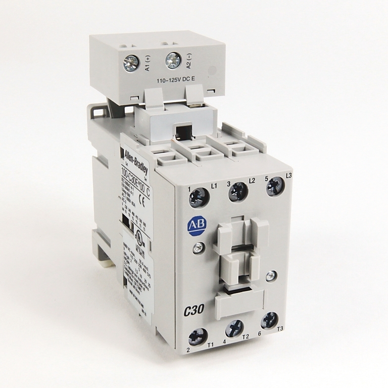 100-C IEC Contactor, 110-125V DC Electronic Coil, Screw Terminals, Line Side, 30A, 0 N.O. 0 N.C. Auxiliary Contact Configuration