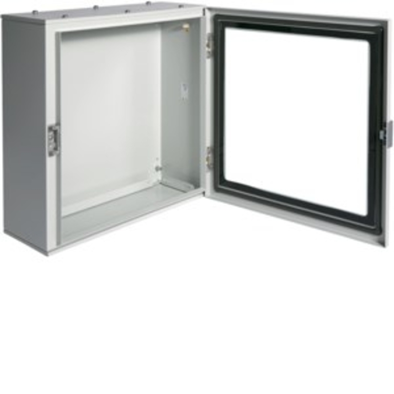 Hager Orion pladekapslet montageskab til indendørsbrug, med aftagelig top og bundflanger incl. Galvaniseret montageplade 2 mm, IP65, RAL 7035, EN50298 og EN62208