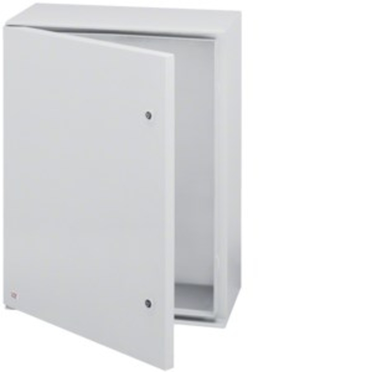Hager Orion polyester montageskab til indendørsbrug, med aftagelig top og bundflanger incl. Galvaniseret montageplade 2 mm, kapslingskalsse II, IP65, RAL 7035, EN50298 og EN62208