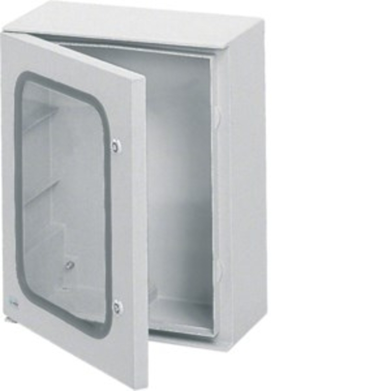 Hager Orion polyester montageskab til indendørsbrug, med aftagelig top og bundflanger incl. Galvaniseret montageplade 2 mm, kapslingskalsse II, IP65, RAL 7035, EN50298 og EN62208