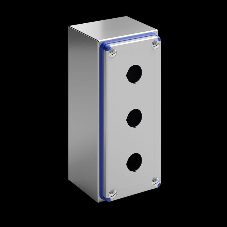 Push button box in AISI 304 (Wnr 1.4301) stainless steel. The special profile designed to facilitate cleaning makes it ideal for use where high standards of hygiene are required.