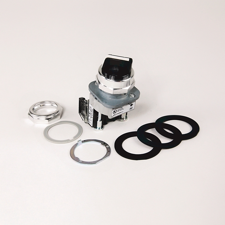 30.5mm Type 4/13 2 Pos Sel. Switch-Non-Illum., White, Std. Knob Maint., 1 NO, Finger Safe Guards