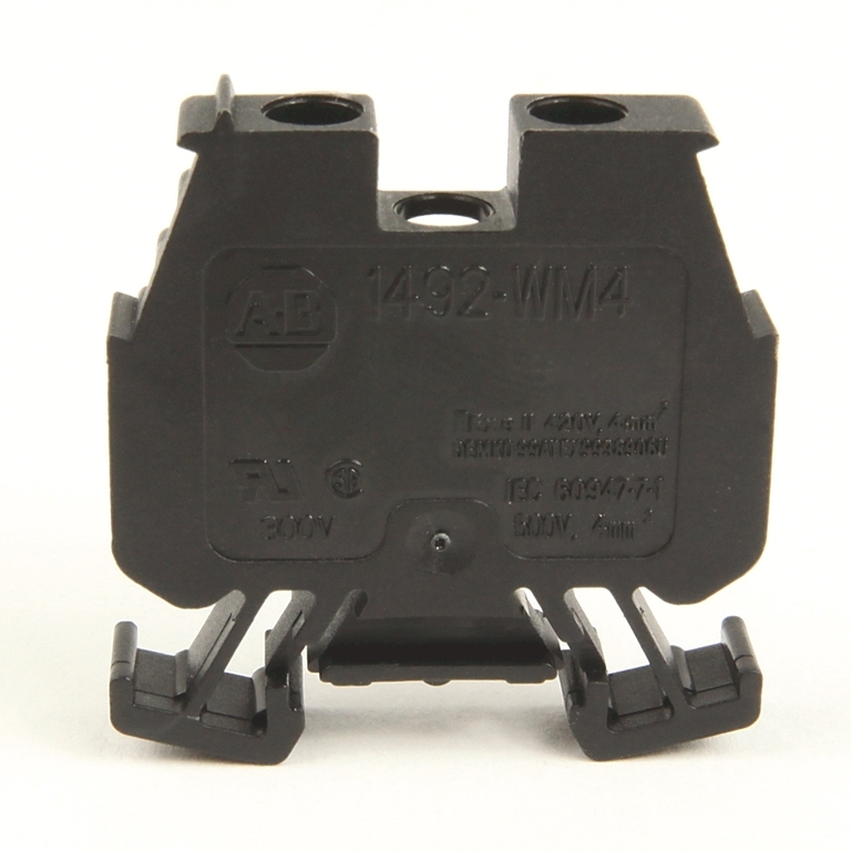 1492-W IEC Terminal Block, One-Circuit Mini Feed-Through Block, 4 mm (# 22 AWG - # 10 AWG) or 2.5 mm (# 22 AWG - # 12 AWG), Standard Feedthrough, Black