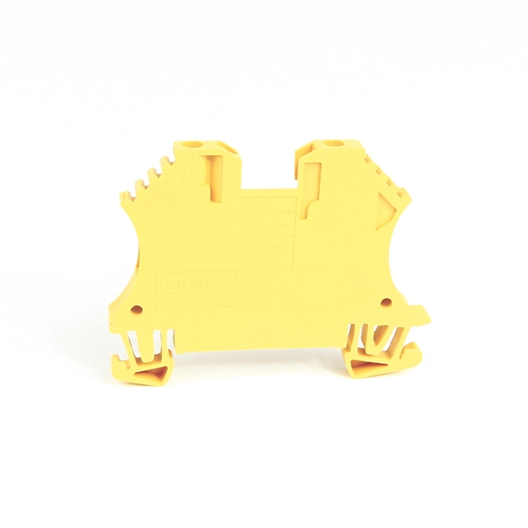 1492-J IEC Terminal Block, One-Circuit Feed-Through Block, 2.5 mm (# 24 AWG - # 12 AWG), 3 Connection points, 2 on one side, Yellow