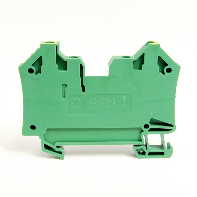 1492-J IEC Terminal Block, One-Circuit Feed-Through Ground Block, 1.5 mm (# 22 AWG - # 16 AWG), 2 Connection points on each side, Green / Yellow Stripe (Standard)