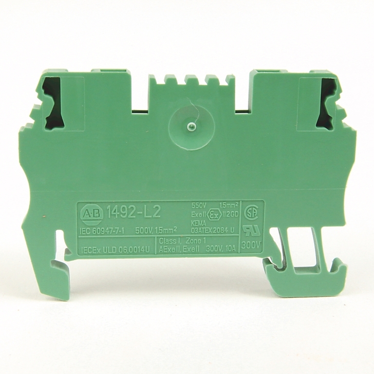 Spring Clamp Terminal Block,One-Circuit Feed-Through Block,1.5mm² (# 26 AWG - # 14 AWG),Standard Feedthrough,Green
