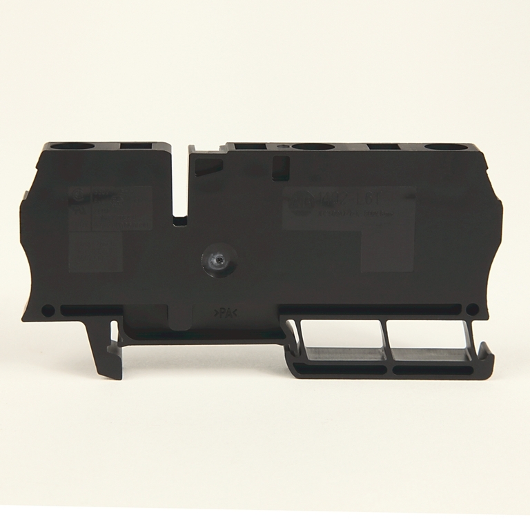 Spring Clamp Terminal Block,One-Circuit Feed-Through Block,6 mm (# 22 AWG - # 10 AWG), 4 mm for H4 block,2 Connection points on one side,Black