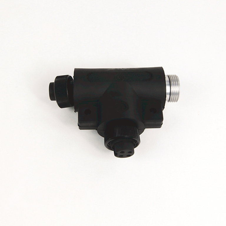 Trunk Tee Plug: Auxiliary Power, Parallel- 1 input port, 4 pins, 3 connector, Mini, Female to Male/Female, PUR, 4 meter, Keyway toward Center, 4 meter